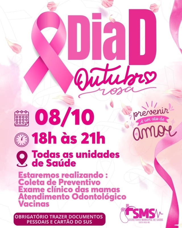 A secretaria de Saúde de Costa Rica reforça que o Dia D é uma oportunidade importante para as mulheres da cidade não apenas se informarem sobre o câncer de mama, mas também tomarem a decisão de realizar exames que podem detectar a doença em estágios iniciais. A ação é parte de um esforço contínuo para aumentar a conscientização e os cuidados preventivos na comunidade.