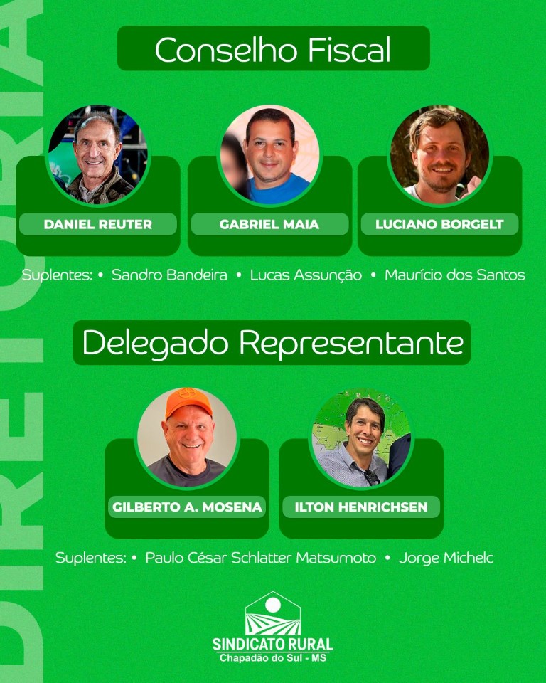 Na chapa eleita, o produtor rural Gilberto A. Mosena assume a presidência, e Adriano Loeff será vice-presidente. A dupla destaca ter forte ligação com a atividade produtiva local e apresenta como metas a valorização da cadeia do agro, a capacitação dos associados e a representatividade dos produtores junto aos poderes públicos e demais instâncias.