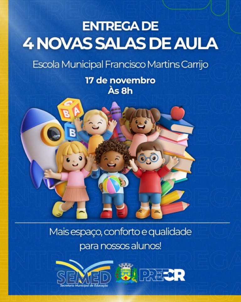 A ampliação é parte de um conjunto de intervenções voltadas ao fortalecimento da rede educacional, especialmente em áreas que registram aumento populacional e maior procura por vagas na educação municipal.